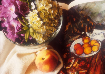 Still Life with Cezanne's Rideau a Fleurs et Fruits-2 © Shirley Pasternak 2003